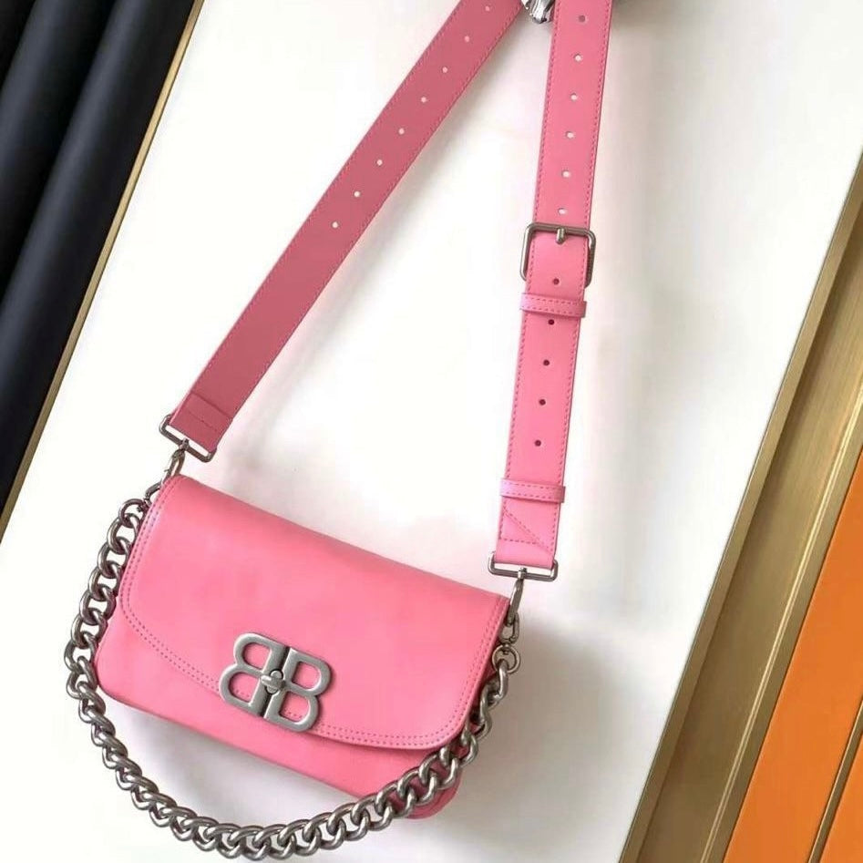 The strap is wrinkled and very simple, the bag is small only for wallet, phone, change… But generally comfortable and cute. The chain is very beautiful