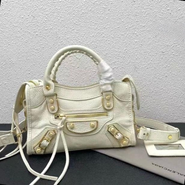 Iconic, edgy, and effortlessly cool — the Natural Metallic City Bag is inspired by Balenciaga’s cult-favorite design that defined street style. Featuring distressed metallic-style vegan leather, bold zipper details, and signature stud accents, this designer-inspired piece adds instant attitude to any outfit.