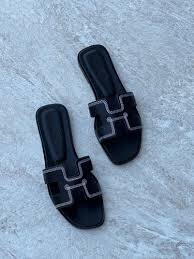 Meet the bold update to a fashion icon — our designer-inspired studded Oran sandals in black suede. Featuring the classic “H” silhouette, now outlined with dazzling studs for a touch of rock-chic elegance. Whether you’re pairing them with jeans or a silk slip, these slides are a statement in every step.