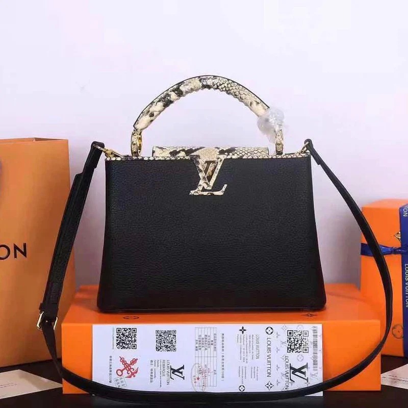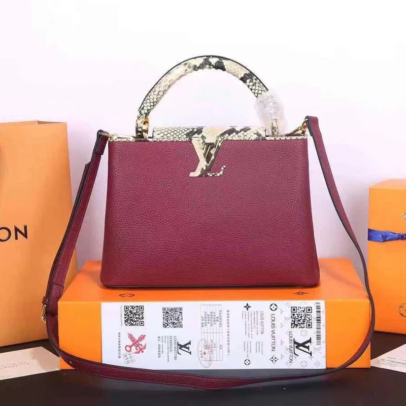 Elegant, structured, and a true symbol of refined luxury — the Capucines Bag is inspired by one of Louis Vuitton’s most sophisticated and iconic designs. With its signature flap, sculpted top handle, and polished hardware, this designer-inspired piece is perfect for those who love classic style with a modern twist.