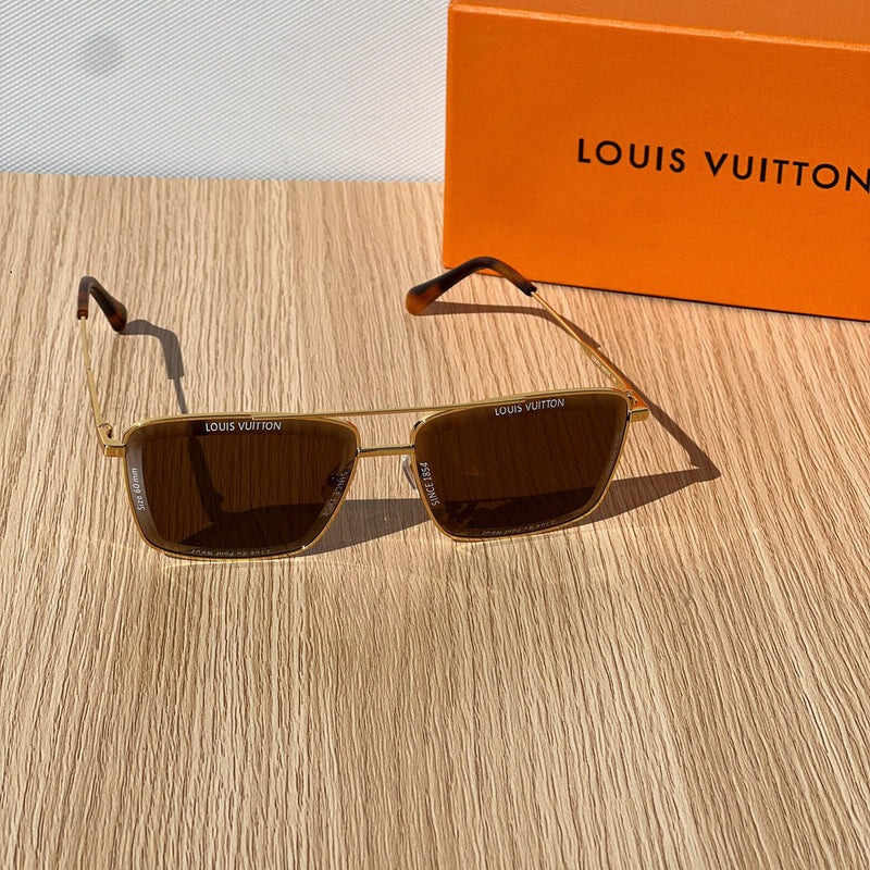 Inspired by the Louis Vuitton Evidence Metal Frame Sunglasses, this design features sleek square lenses with a minimalist metal structure and subtle Louis Vuitton branding across the browline. A sharp, lightweight silhouette ideal for modern sophistication with a timeless designer-inspired edge